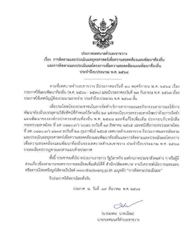 รายงานผลการติดตามและประเมินผลแผนพัฒนาท้องถิ่น ประจำปีงบประมาณ พ.ศ. 2568